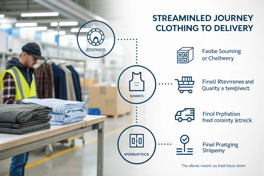 The process typically begins with product development and prototyping. Our technical designers work with your specifications to create patterns and a first sample. Once the sample is approved, we move to sourcing all raw materials—from technical fabrics and insulation to zippers, threads, and the integrated electronic components. Our established relationships with material suppliers often allow us to secure better prices and ensure material quality. Then, production planning begins, where we schedule the run across our production lines to meet your deadline. This end-to-end management is a core part of our apparel manufacturing services, designed specifically for brands that want a seamless experience.