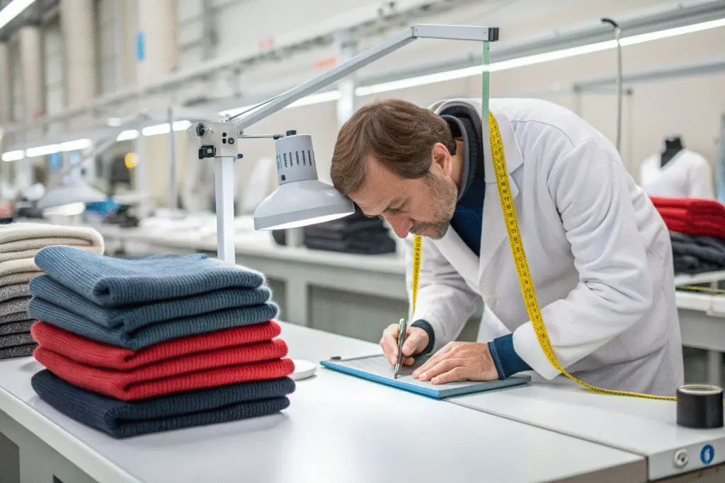 During Knitting Even stitching, correct tension, and no holes Catches manufacturing defects early, saving time and cost.