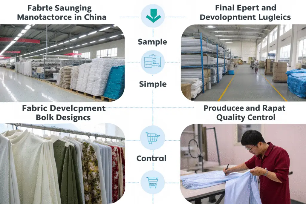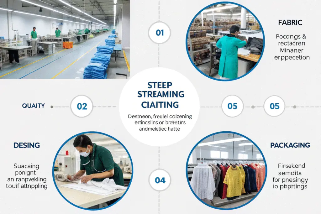 The process typically includes fabric sourcing and testing, pattern making, sample development, bulk production, quality control, and final export logistics. Each stage is critical for transforming your design into a market-ready product.