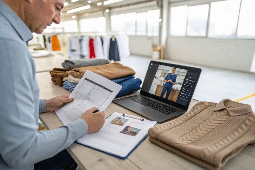 Sample Evaluation Assesses fit, fabric quality, stitching, and overall finish.