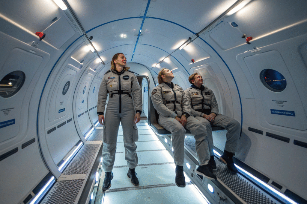 Zero-gravity tailoring means designing garments that balance cabin safety (low lint, fire resistance, anti-static) with comfort and style. What needs to be emphasized here is that these aren’t spacesuits; they’re tailored cabin wear for tourists—functional, safe, and photogenic.