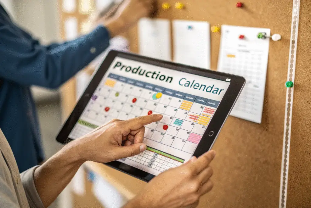 • Shipping schedules: Detailed breakdowns covering fabric procurement, cutting operations, sewing phases, finishing processes, and export arrangements