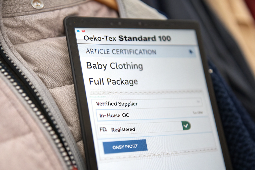 Use specific, layered search queries and filters that combine product keywords with compliance terminology and verification demands. Go beyond “OEKO-TEX” to include “STANDARD 100 Article Certification,” “Grade 1 for babywear,” and “certificate number verification.” Combine this with operational filters like “full-package manufacturing” and “in-house quality lab” to pinpoint factories like ours that are built for certified production.