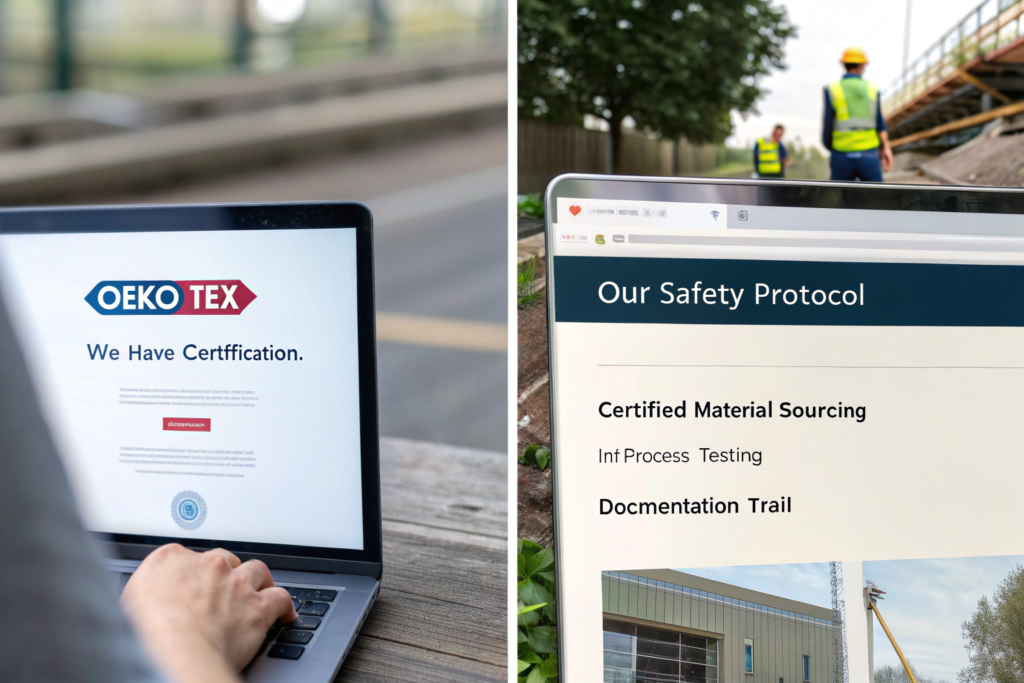 - Vague Claims: "All our fabrics are safe and OEKO-TEX certified." This is impossible to prove and shows a lack of understanding.