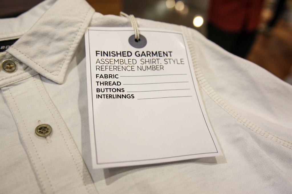 You must confirm that the certificate covers the finished garment you are buying, not just a component fabric. For a woven shirt, for example, the certificate must list the assembled shirt (including its specific style/reference number), proving that all components—fabric, thread, buttons, interlinings—have been tested as a system.