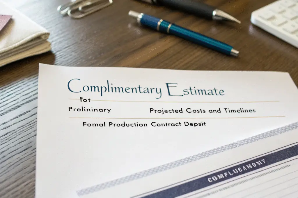 Complimentary estimates fall into the category of preliminary business discussions rather than formal contracts. They represent the manufacturer's initial pricing based on your specifications.