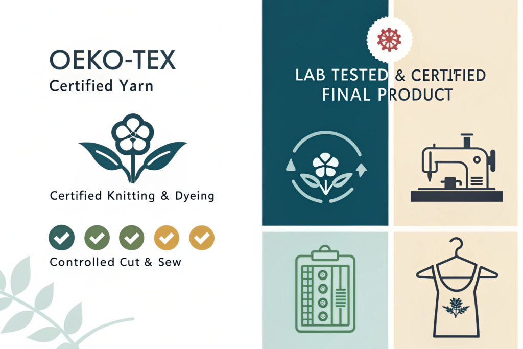 • Yarn Origin: Start with OEKO-TEX certified cotton or organic cotton. The certification must be traceable to the spinner.