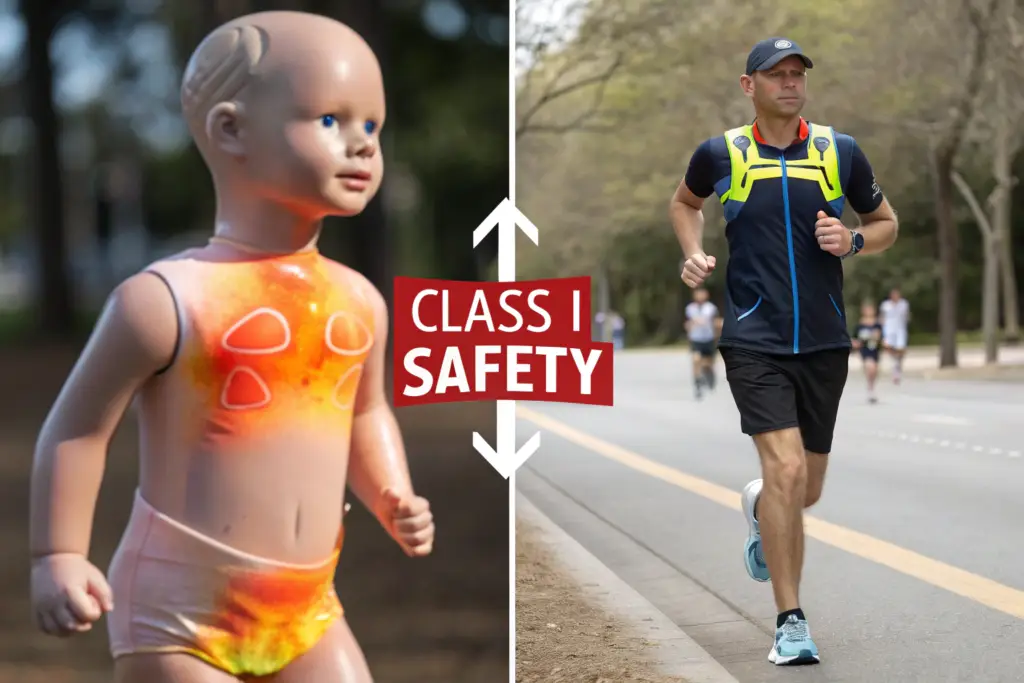It sounds extreme—why should an adult’s hiking vest be held to baby product standards? The answer lies in both physiology and ethics. Babywear (Class I) has the strictest limits because an infant’s skin is more permeable, their detoxifying organs are immature, and they frequently put clothing in their mouths. For a functional vest, which is worn directly against skin or thin base layers during sweat-inducing activity, the wearer’s skin is also warm, damp, and more absorbent.