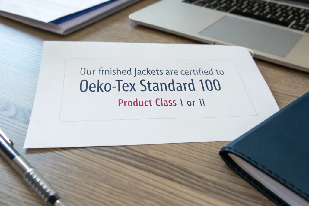 Decode claims by demanding specificity. "OEKO-TEX certified" is vague. "Our finished jackets are certified to OEKO-TEX STANDARD 100, Product Class I or II" is specific. Always ask for the certificate itself, not a summary. Then, perform the verification checks yourself.