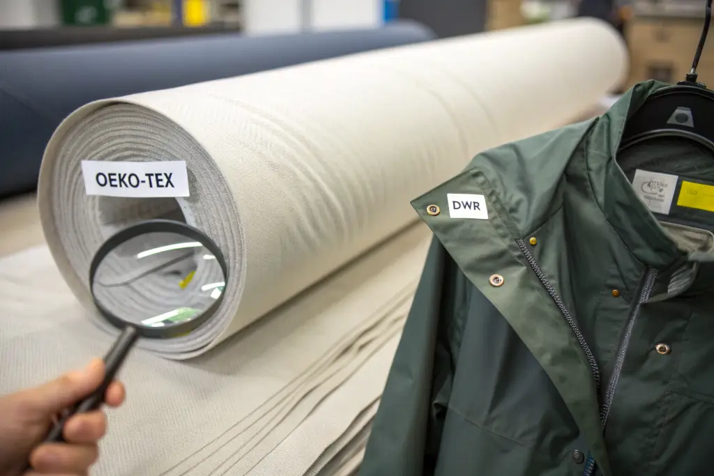 | "Our fabrics are OEKO-TEX certified." | The raw fabric from the mill is certified. The finished garment may not be. | "Can you show me the certificate for the finished jacket, including DWR?" |