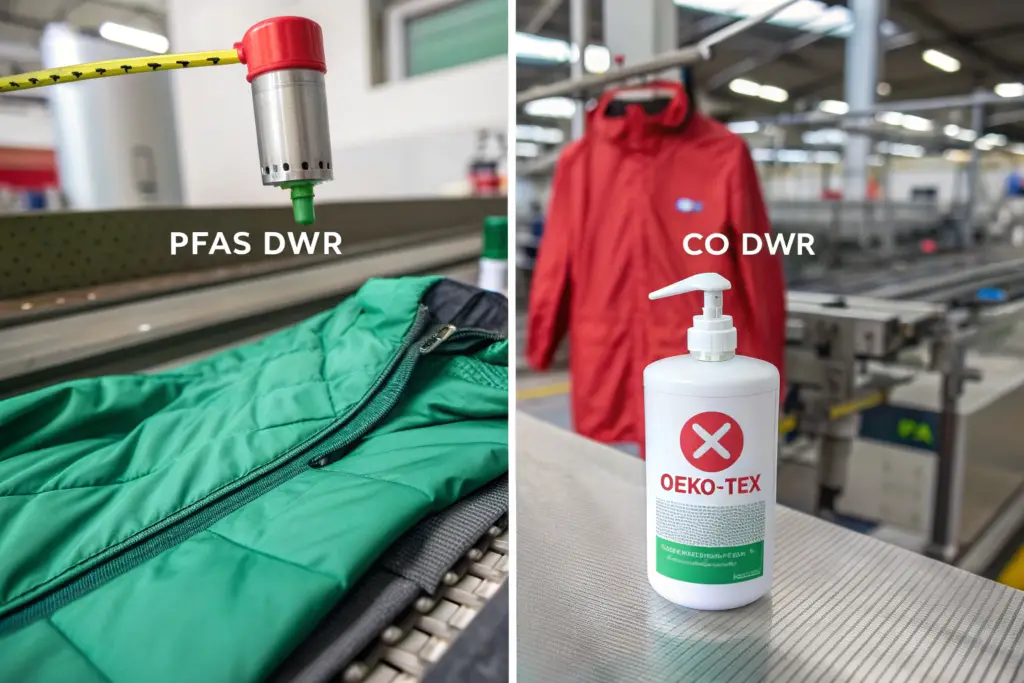 This is a crucial distinction. A waterproof membrane (e.g., ePTFE like Gore-Tex, or PU) is a physical layer laminated inside the jacket for waterproofing. The DWR is a topical treatment on the outer fabric to make water bead up and roll off. Both must be compliant. A membrane's lamination adhesives and a DWR's chemical composition are separate but critical test points in the certification of the final garment.