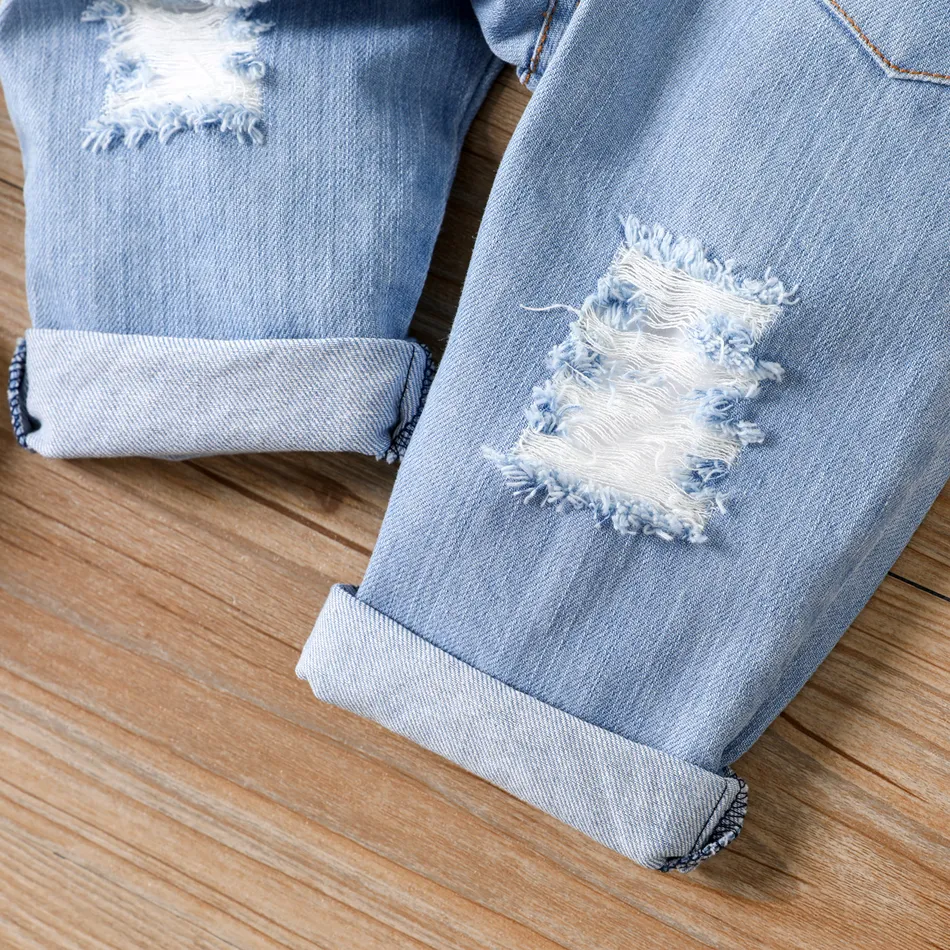 100% Cotton Baby Girl Button Design Spaghetti Strap Ripped Denim Overalls