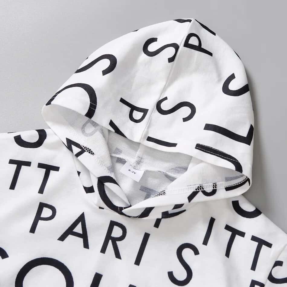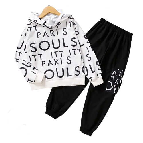 2pcs Kid Boy Letter Print Hooded Sweatshirt and Pocket Design Black Pants Set