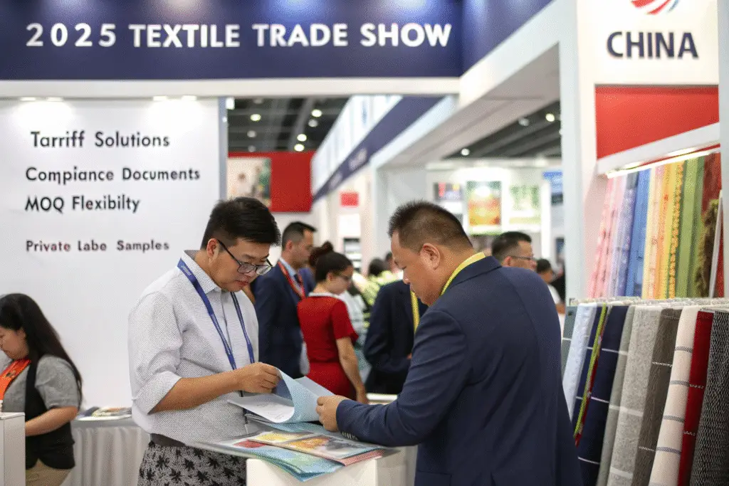 Trade shows are more than sourcing festivals—they’re your first checkpoint in a high-tariff, high-stakes sourcing environment. And in 2025, only suppliers with real compliance, fabric traceability, and MOQ flexibility will deliver real value.