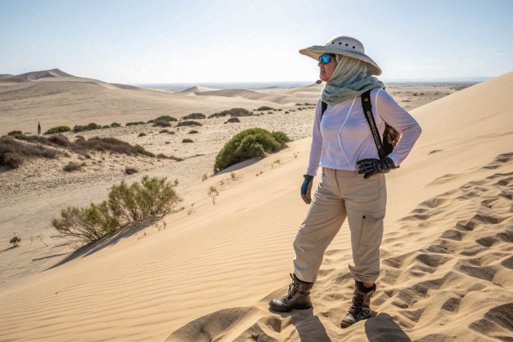 Here’s where many people get tripped up: they assume “lightweight cotton” is enough. But in the desert, not all fabrics are created equal. Some will trap sweat and heat. Others might feel comfortable but let dangerous UV rays sneak through.