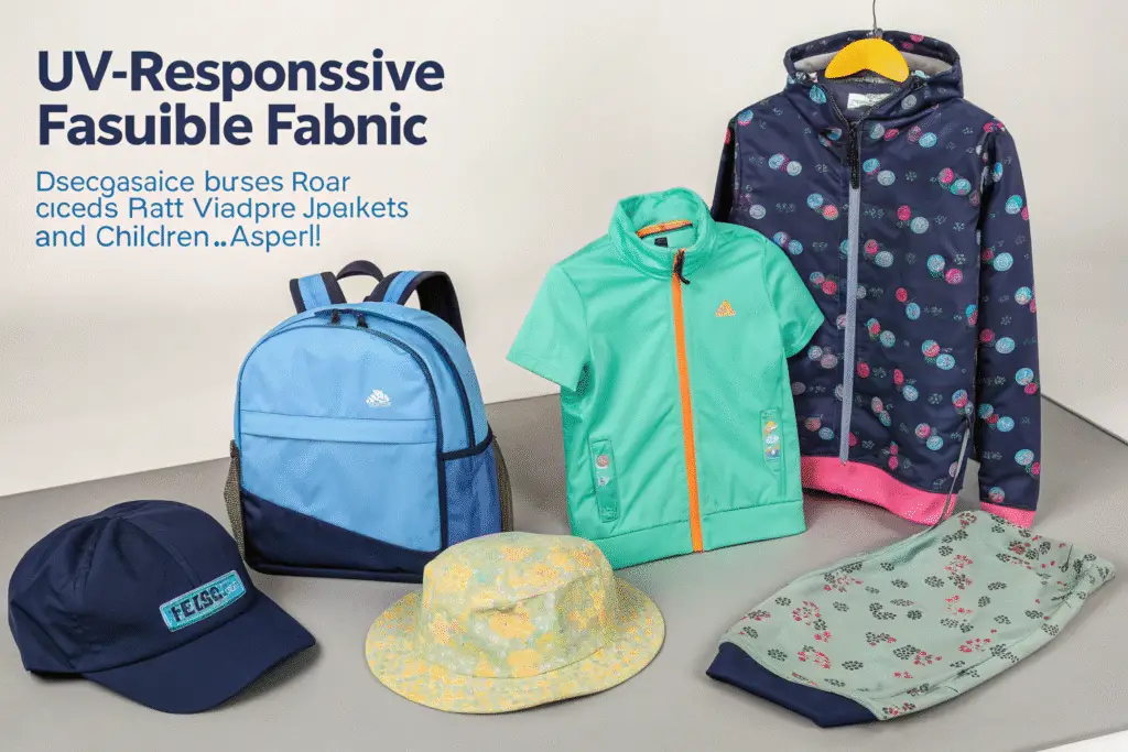 Applications are expanding in visors, jackets, hats, backpacks, and even children’s apparel, where fabrics respond to UV as a playful safety feature.