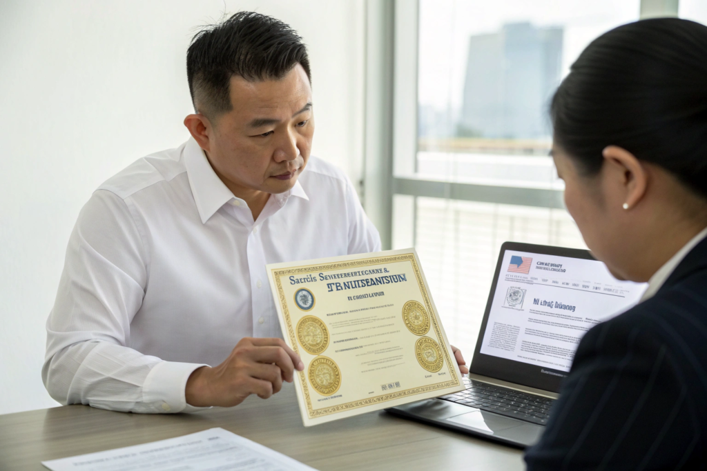 The word "license" is not enough. A factory can hold a license that restricts them to selling fabric only. They can hold a license that restricts them to producing for the domestic Chinese market. They can hold a license that expired three years ago. None of these scenarios protect you.