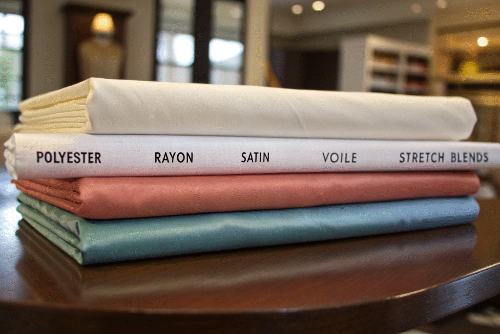 Top lining fabrics for dresses include polyester, rayon, satin, cotton voile, and spandex blends — each chosen based on breathability, weight, and compatibility with outer fabrics.