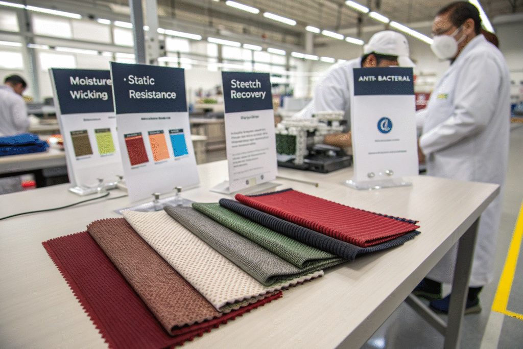 Functional properties like stretch, anti-static, moisture-wicking, and antibacterial coatings help improve comfort and reduce returns.