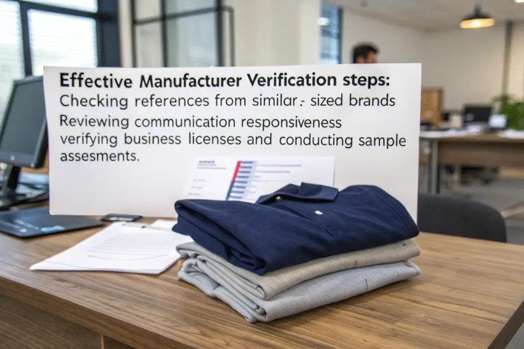 Effective manufacturer verification includes checking references from similar-sized brands, reviewing communication responsiveness, verifying business licenses and certifications, and conducting sample assessments. These steps prevent partnership disasters.