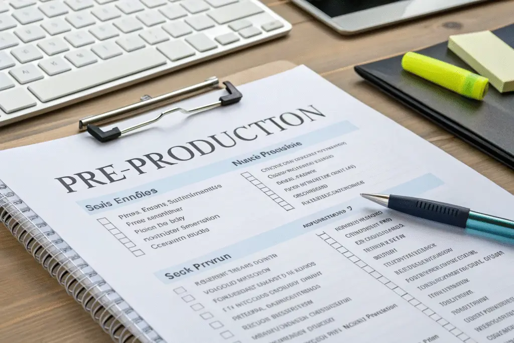 What are the critical components of a pre-production checklist?