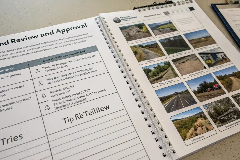Create a structured review and approval system using checklist criteria, photo documentation, and fast follow-up timelines.