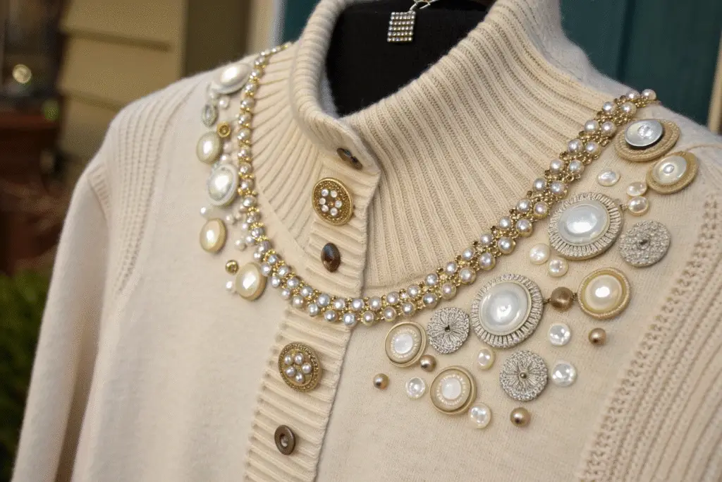 Buttons and beads are the jewelry of a sweater. They provide a focal point and can completely change the garment's character. A simple bead can elevate a basic sweater to a luxury item.