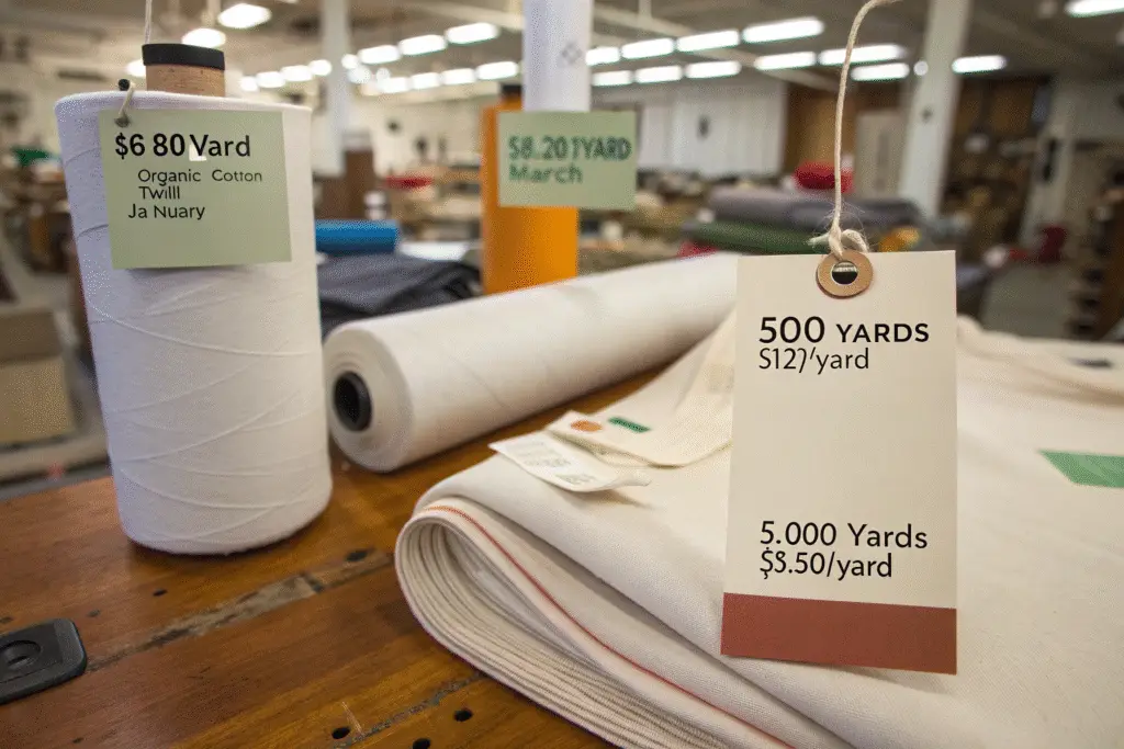 Selecting a $6.80/yard organic cotton twill in January only to discover it costs $8.20/yard by March represents one of manufacturing's most frustrating financial realities. Fabric costs demonstrate remarkable volatility, with raw cotton prices fluctuating up to 30% annually based on global harvest yields, petroleum prices affecting synthetic fabrics, and order quantities dramatically impacting pricing—where 500 yards might cost $12/yard while 5,000 yards drops to $8.50/yard.