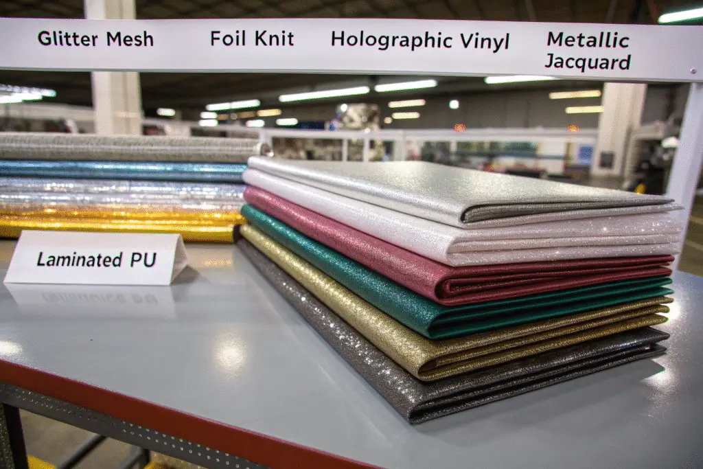 There’s no single “metallic fabric.” Instead, you're dealing with a wide category that includes foiled knits, coated synthetics, jacquards, vinyls, and bonded constructions. Each comes with different price points, performance, and sourcing challenges.