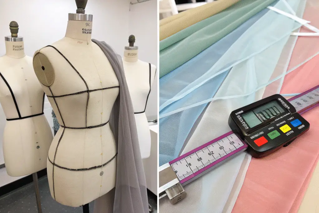 We help clients test transparency using mannequin torso drapes under photography lighting — simulating retail try-on conditions.