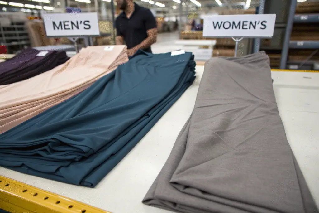 The fabrics used for men's and women's garments differ in drape, opacity, stretch, and seam performance. This influences not only cost but also factory capability.