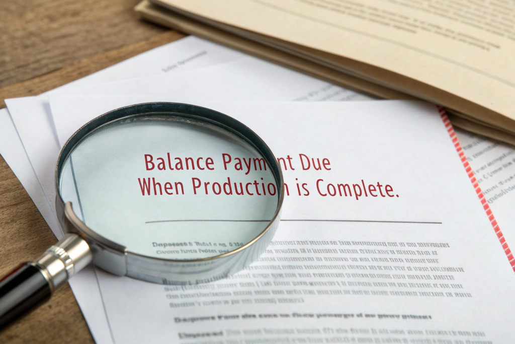 A term like "50% payment when production is halfway" is meaningless. What defines "halfway"? Instead, demand clear, verifiable milestones: