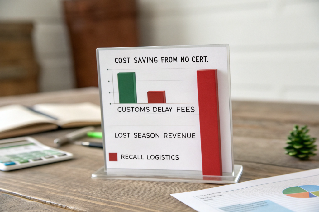 The financial risk manifests in three escalating stages: 1) Logistical Paralysis: Customs holds and testing delays incur daily storage fees (demurrage) that can exceed the value of the goods. 2) Corrective Action Costs: If goods fail, you pay for re-testing, re-working, or destroying the inventory. 3) Total Write-Off: If the failure is irreparable (e.g., chemical contamination), the entire order is seized and destroyed, a 100% loss on goods, shipping, and duties. The initial 5-15% "savings" from skipping certification evaporates in the first day of a customs hold.