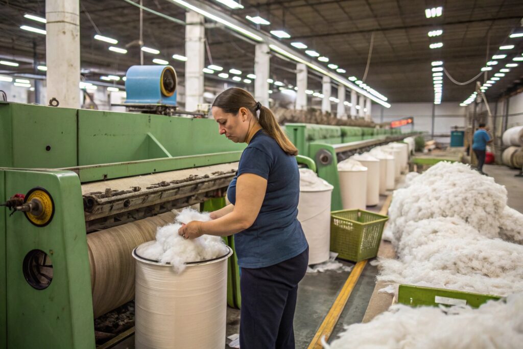 | Spinning | Twisting fibers into yarns using spinning machines |