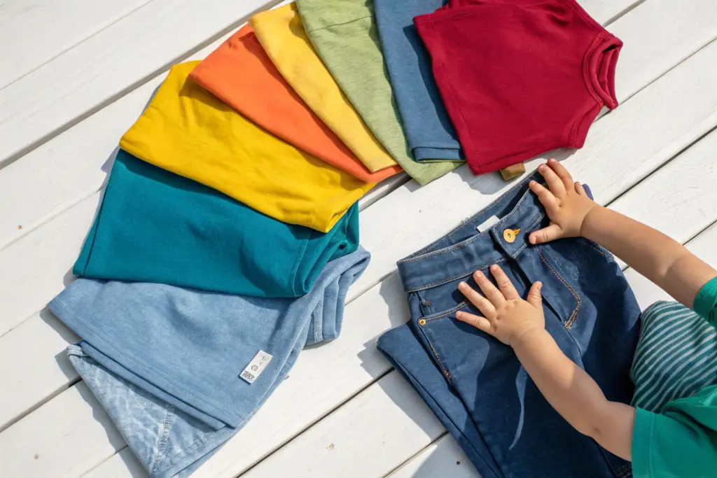 The top fabrics for durable wholesale kids' wear balance three critical factors: Abrasion Resistance (to prevent knee holes), Tensile Strength (to prevent seam rips), and Color Fastness (to survive frequent hot washes). The best options include French Terry for structured playwear, Interlock Cotton for soft durability, Poly-Cotton Blends for stain resistance, and Oxford Cloth for bottoms. Natural fibers like 100% cotton feel great but degrade faster. The key is finding the right blend or construction technique that gives the softness parents want and the toughness kids need.