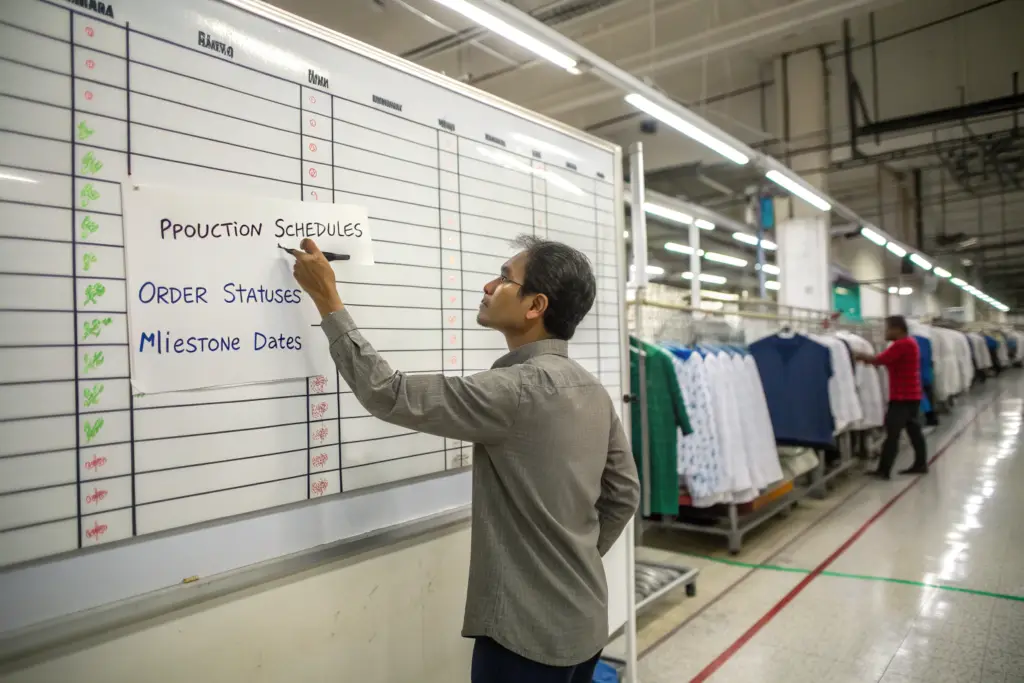A project manager in Chicago taught me about the importance of a production tracking sheet. She created a shared Google Sheet. It had a tab for every style. It had columns for fabric, trims, cutting, sewing, finishing, packing, and shipping. She updated it daily. She shared it with us and with her internal team. Everyone could see the status at any time. There were no more "where is my order" emails. The sheet answered the question.