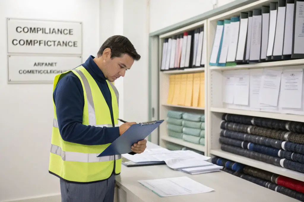 Compliance audits ensure a factory can legally produce and export goods. This means checking licenses, export permits, and compliance with U.S. or EU standards, especially for textile safety and labor laws.