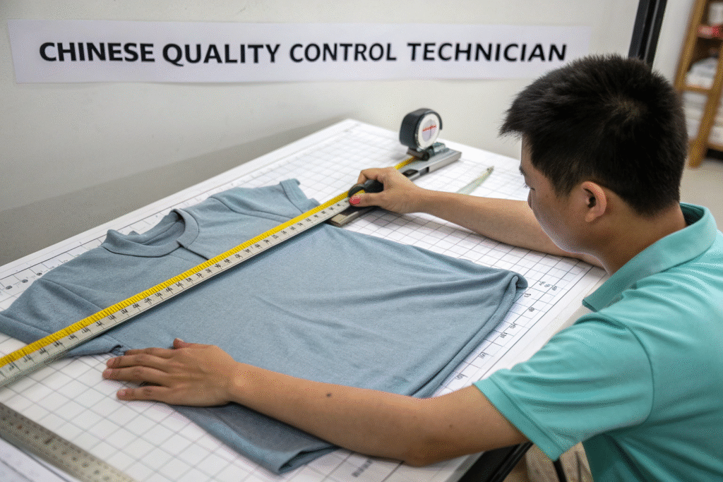 Measurement verification ensures each garment aligns with its intended specs — from shoulder width to sleeve length.