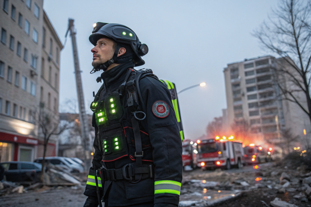 Smart uniforms now integrate ruggedized sensors for vitals, GPS, and air quality monitoring.