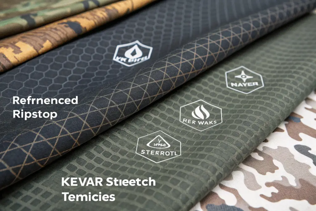 Fabrics like Cordura nylon, Kevlar blends, and ripstop polyester offer abrasion resistance while maintaining stretch for mobility.