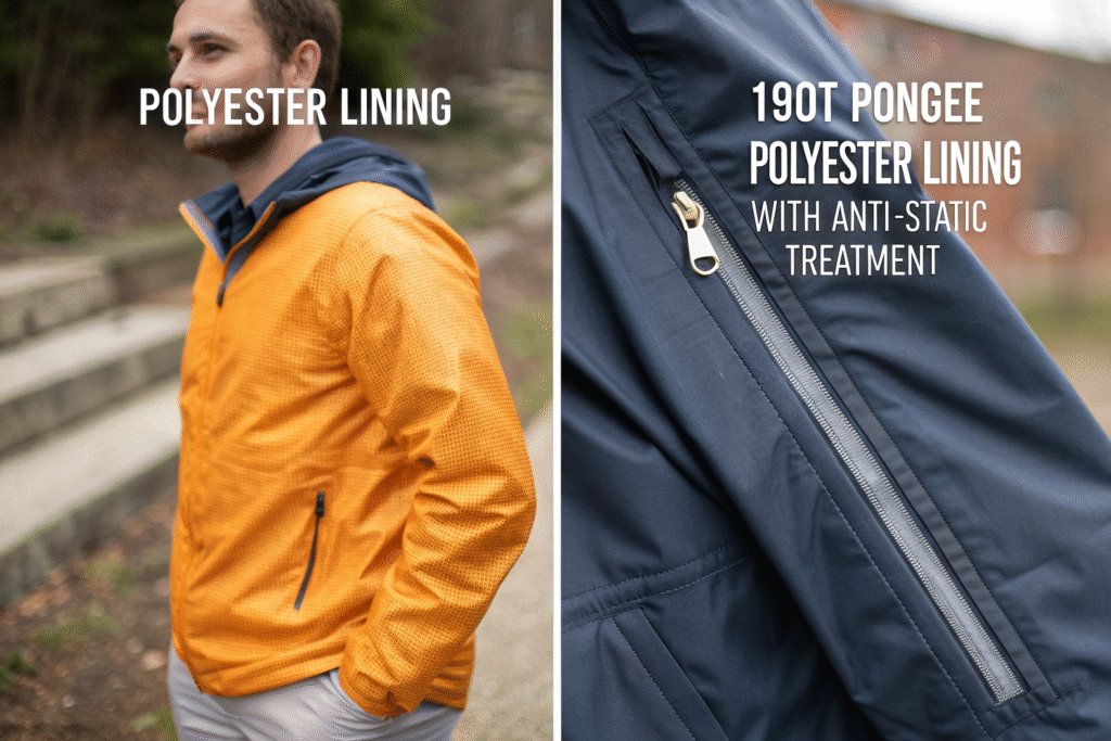 The difference between "polyester lining" and "190T pongee polyester lining with anti-static treatment" is significant in both cost and performance. Detailed specifications prevent substitution and ensure consistency across production runs.