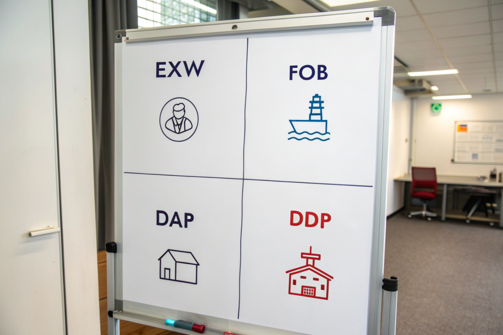 To understand DDP, you need to understand the alternatives. Shipping terms, officially called Incoterms or International Commercial Terms, define who is responsible for what during shipping. There are 11 terms, but for apparel imports from China to the USA, you will mostly encounter four.