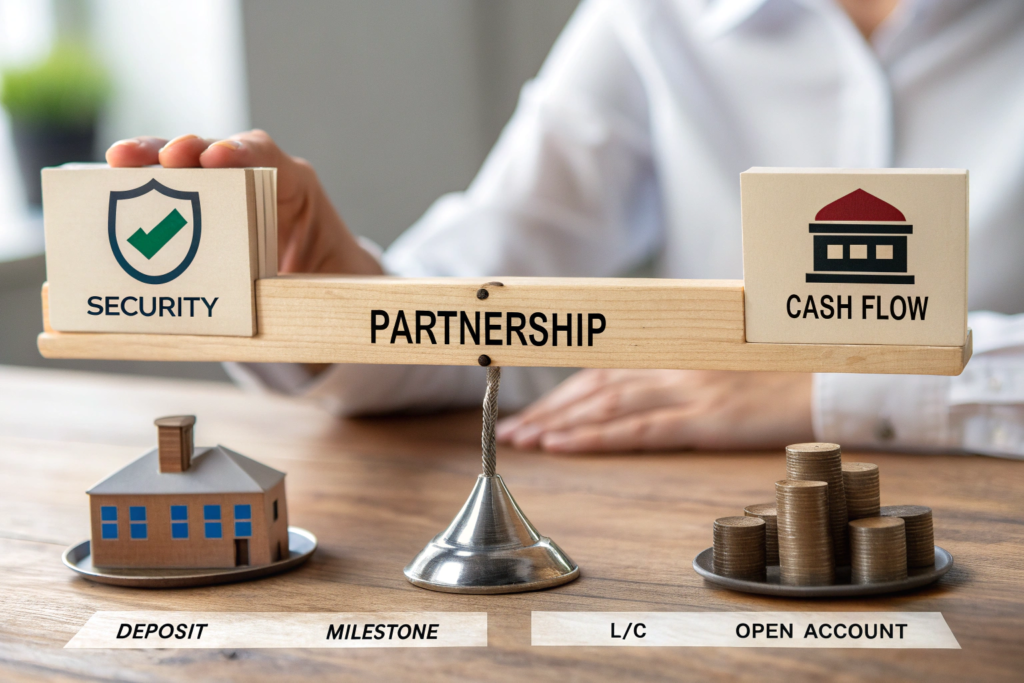 We formalize this with a simple internal rating. A new client with a large order gets our most secure terms (e.g., L/C or large deposit). A long-standing partner with a repeat order might qualify for a simplified deposit + balance structure. Last year, we moved a reliable client from 50% deposit/50% before shipment to 30% deposit/70% net 30 days after shipment, strengthening our partnership because their 2-year history warranted it.