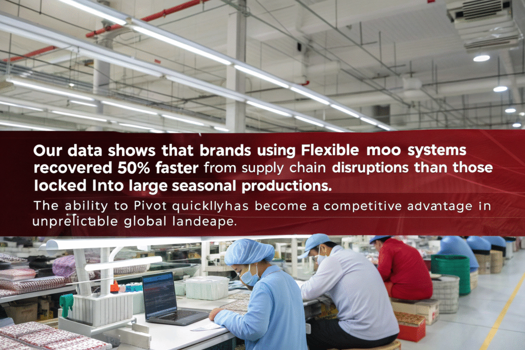 Our data shows that brands using flexible MOQ systems recovered 50% faster from supply chain disruptions than those locked into large seasonal productions. The ability to pivot quickly has become a competitive advantage in an unpredictable global landscape.