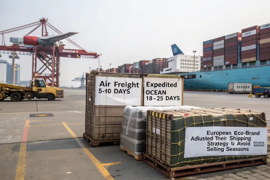 Air freight becomes cost-effective when: dealing with time-sensitive product launches, small quantities where shipping cost differential is minimal, high-value items where inventory carrying costs justify premium shipping, or when missing seasons has significant revenue impact. The decision typically involves calculating the cost of missed sales versus the additional shipping expense. Our clients typically use air freight for 15-20% of their volume - the initial season launch and any unexpected bestseller replenishment.