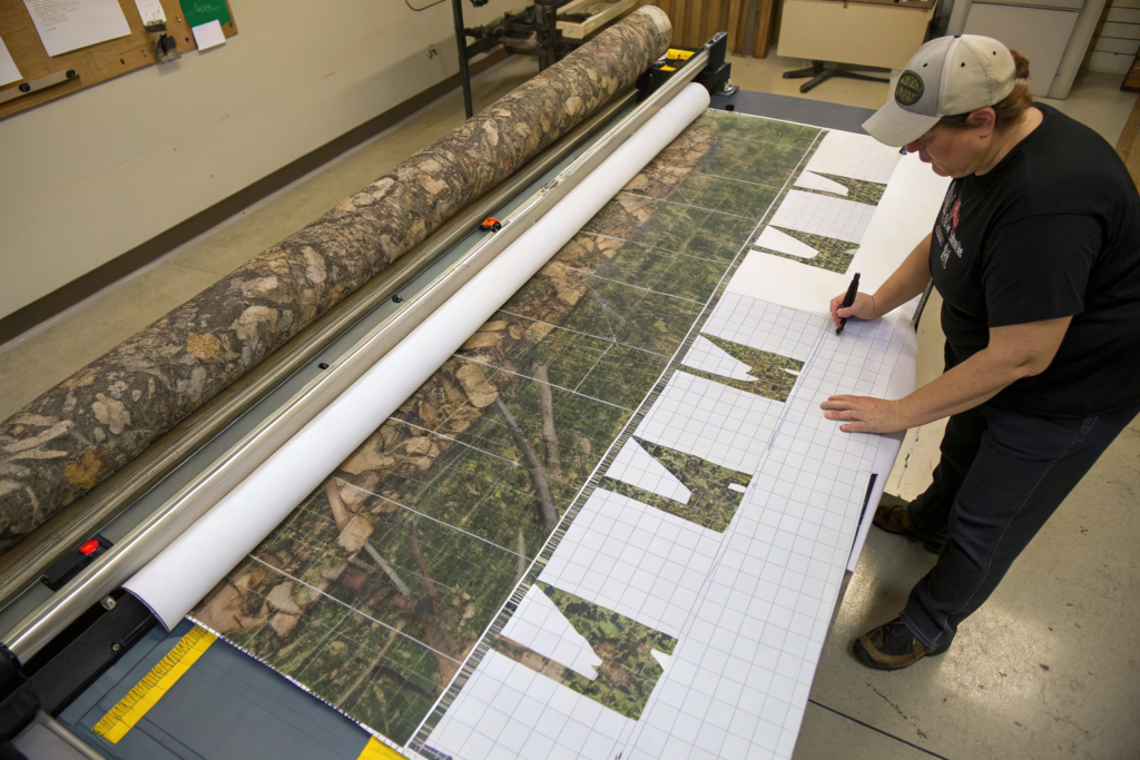 Pattern engineering for Realtree garments involves careful marker making that strategically places pattern pieces to maximize fabric use while ensuring critical pattern matches at key garment seams. This requires skilled pattern makers who understand both grading and the visual importance of the camo design.