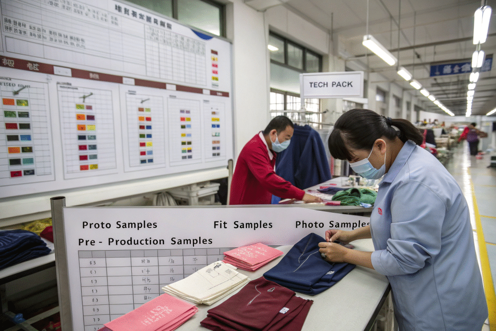 The fit sample represents the most technically complex sampling stage, and the tech pack provides the precise data needed to achieve target fit.