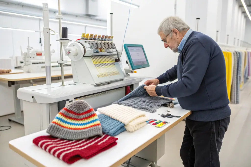 The sampling phase is where concepts meet reality. Relying on an external knitting mill for samples creates communication lag, cost, and quality interpretation gaps. Having a professional knitting team in-house transforms this phase into a rapid, iterative, and controlled dialogue directly with the brand’s designers.