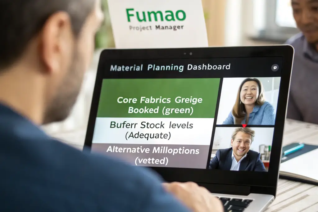 Fumao helps you navigate the material bottleneck through a proactive, strategic partnership. We guide you on building a smart material strategy that includes pre-booking greige fabric for core programs, using stock fabrics for speed and low MOQs, and maintaining a buffer stock of essential materials. Our deep mill network provides alternative options when disruptions hit. Our transparent communication gives you early warning of potential delays. We help you build a resilient supply chain.