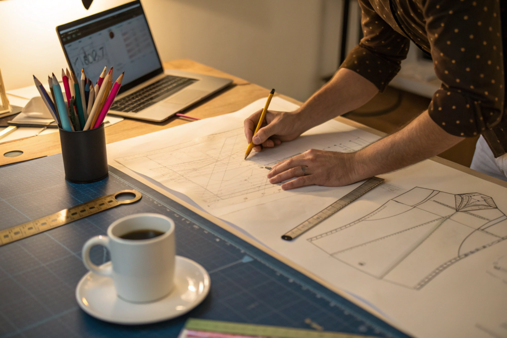 Full package manufacturing includes every single step required to turn your design concept into a finished product delivered to your warehouse. This encompasses design support, pattern making, fabric and trim sourcing, sampling, production, quality control, packaging, and logistics.